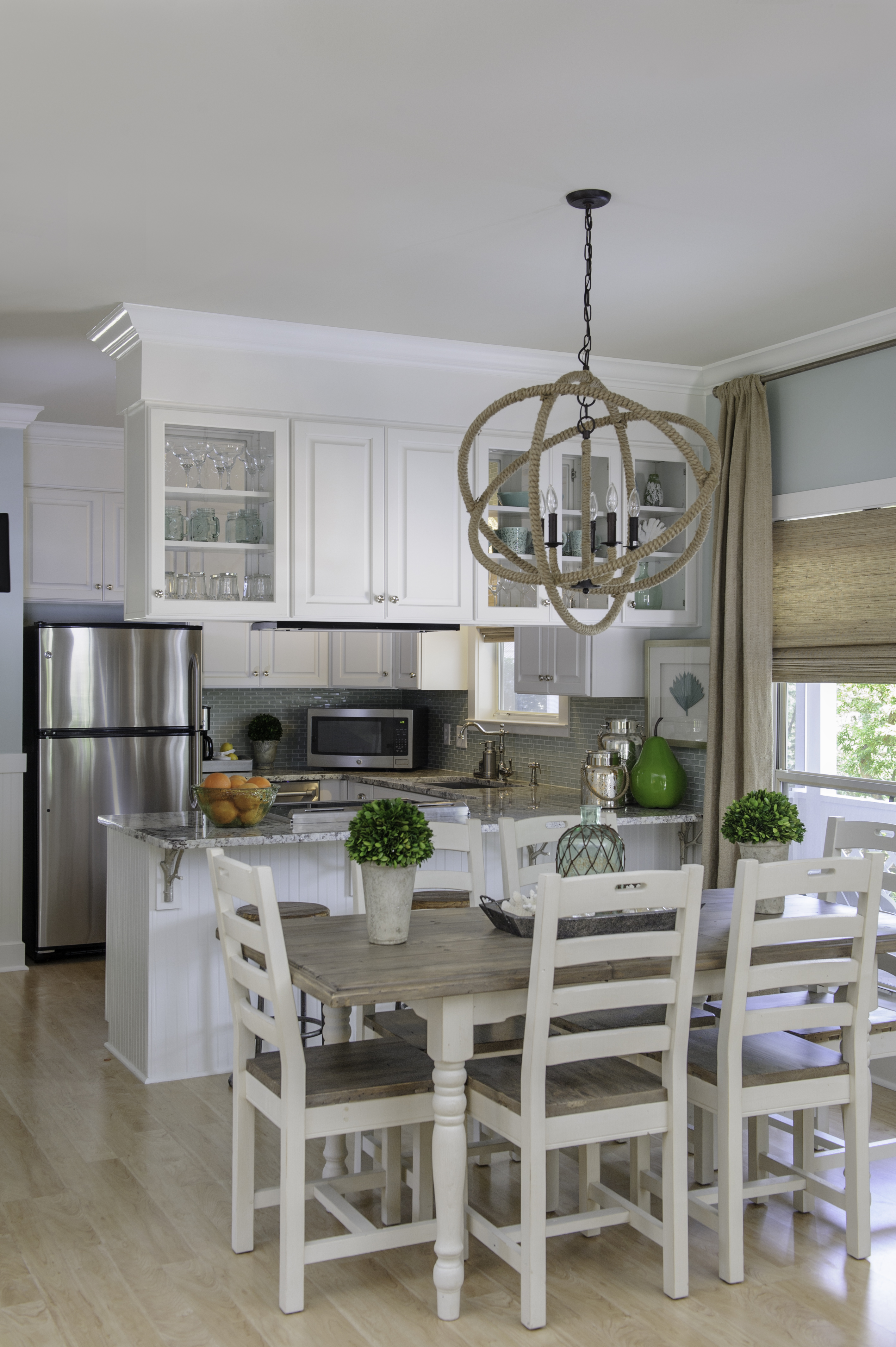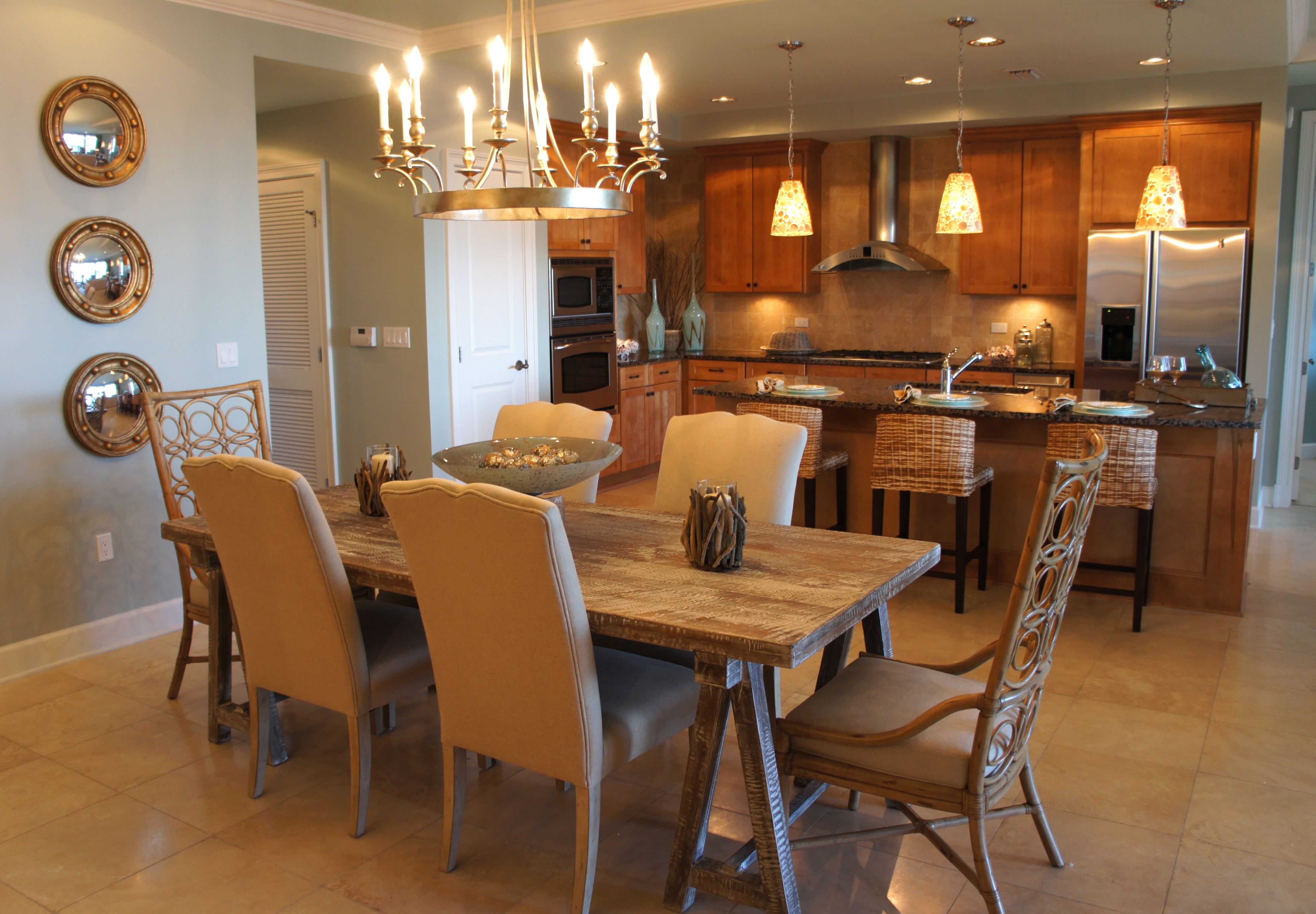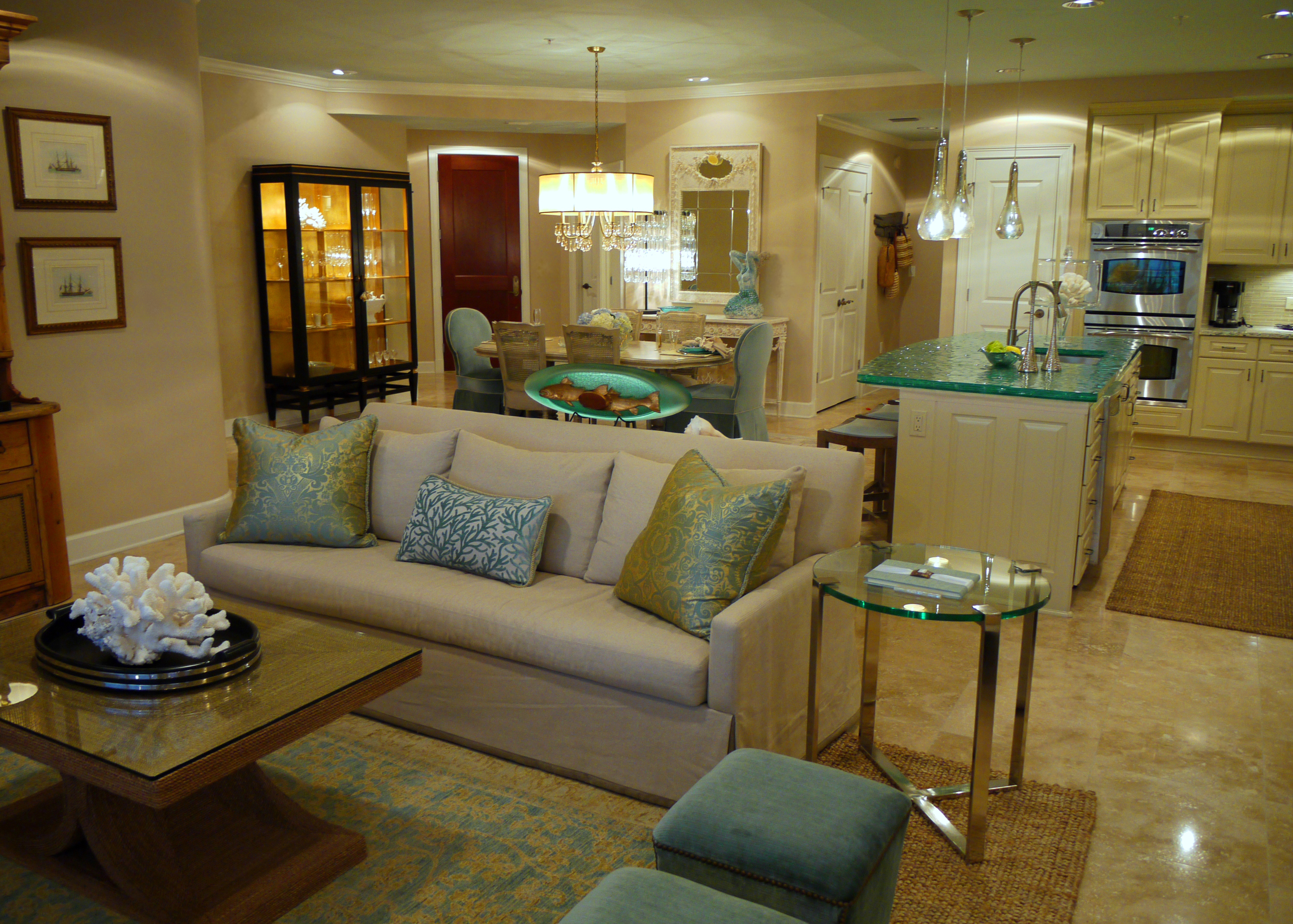 I furnished three model homes for Red Fish Village. Each had its own distictive style, designed to appeal to three different demographics expected to vacation in the area. One model had a casual, cottage feel to it. One was more modern and sleek , and the other was warmer and more traditional, with rustic and masculine attributes. I have yet to fully photograph these units, but here is a sampling of each design: