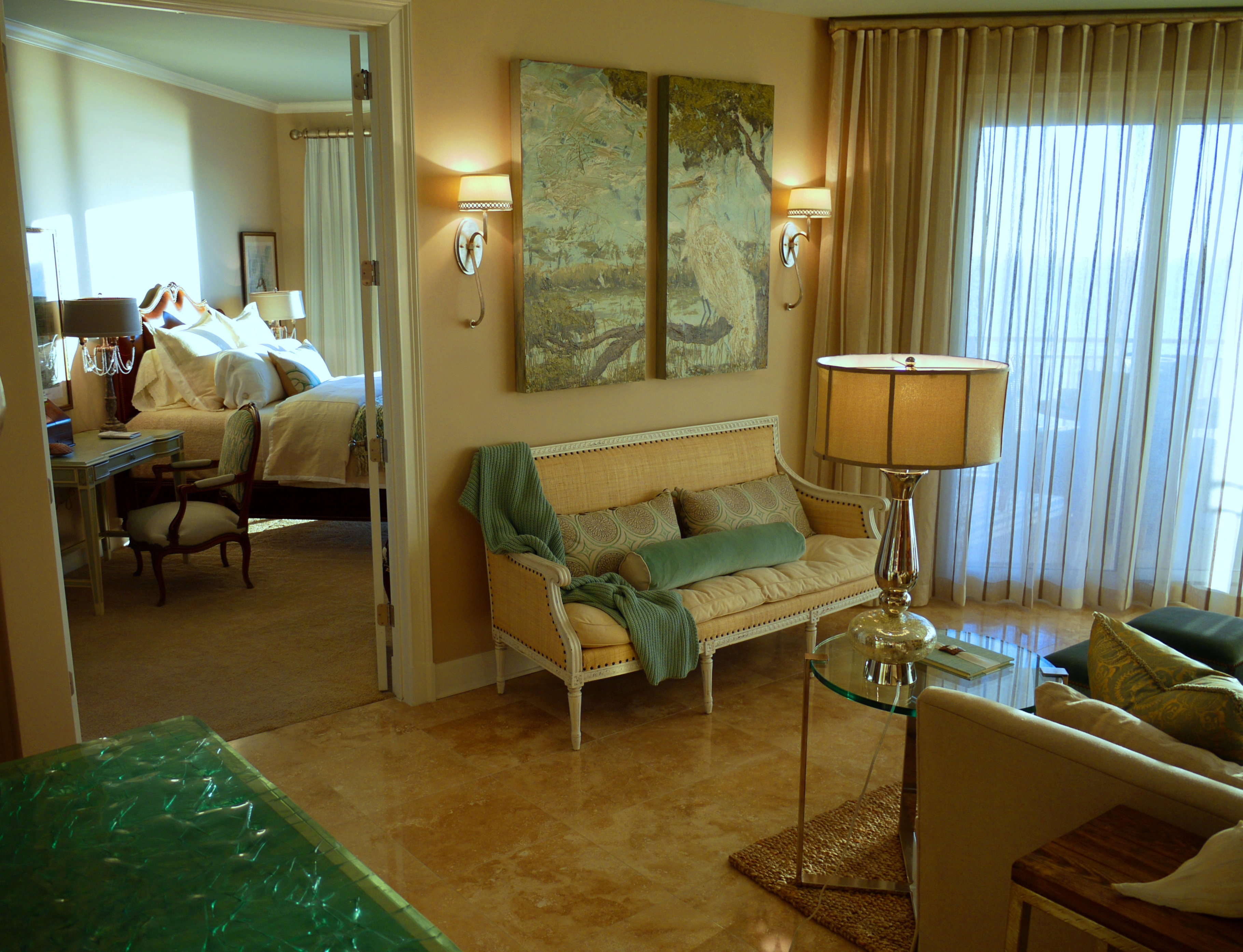 Well, taking on a job in The Big Easy shouldn’t be considered work. Actually, it was a lot of work, but entirely enjoyable! This is a penthouse I redesigned for a client, inside One River Place, overlooking the Mississippi River.