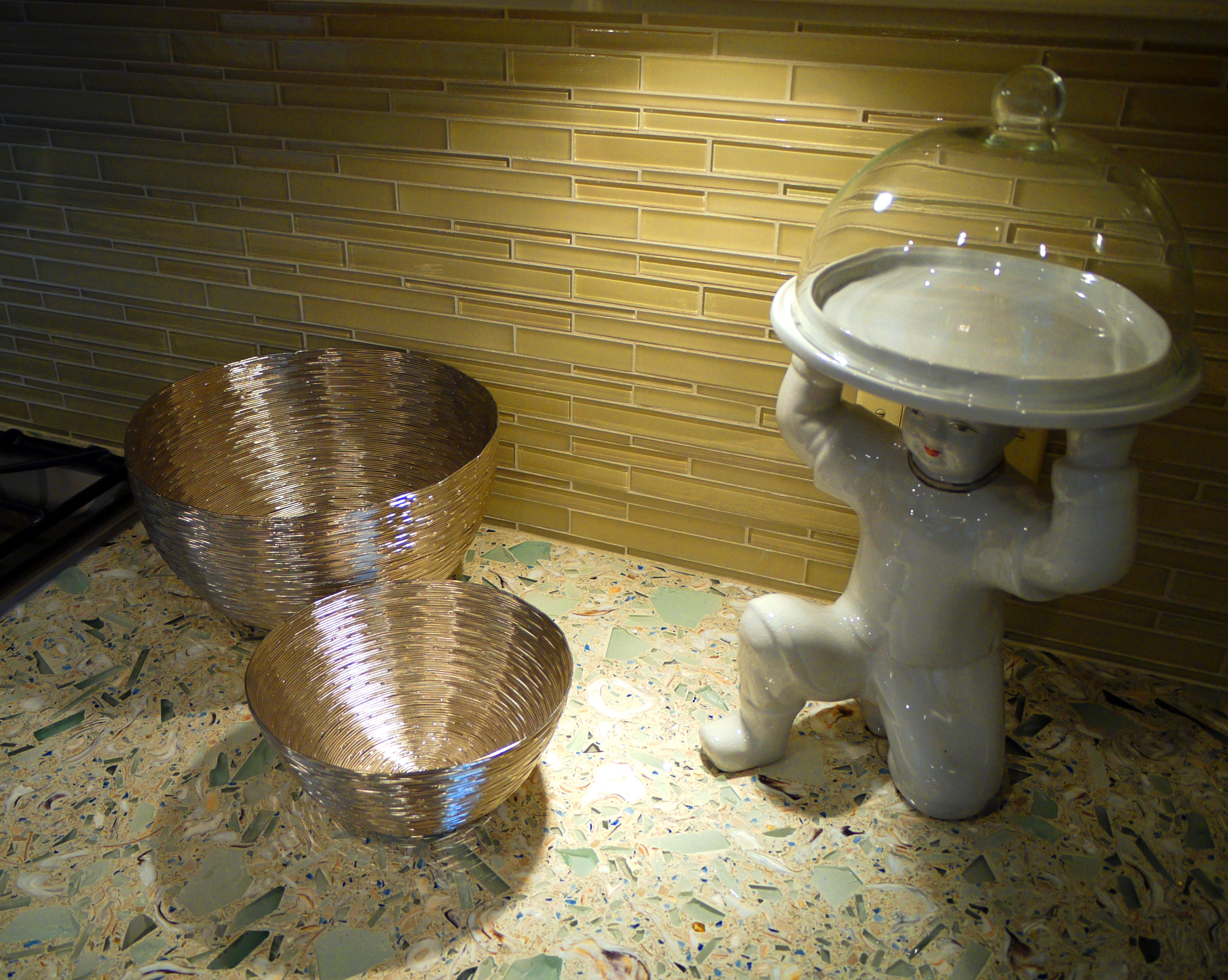 They came back with the glass idea, instead, which I immediately said “YES!” to. It is rich, colorful, and reminiscent of the ocean. Just Perfect!