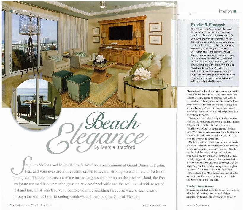 I am proud that a photo of my project was chosen to be on the cover! Check out the Winter 2011 issue of Condo Owner Magazine for a better copy of the full article! Click on each page for a better view–you may need your glasses!