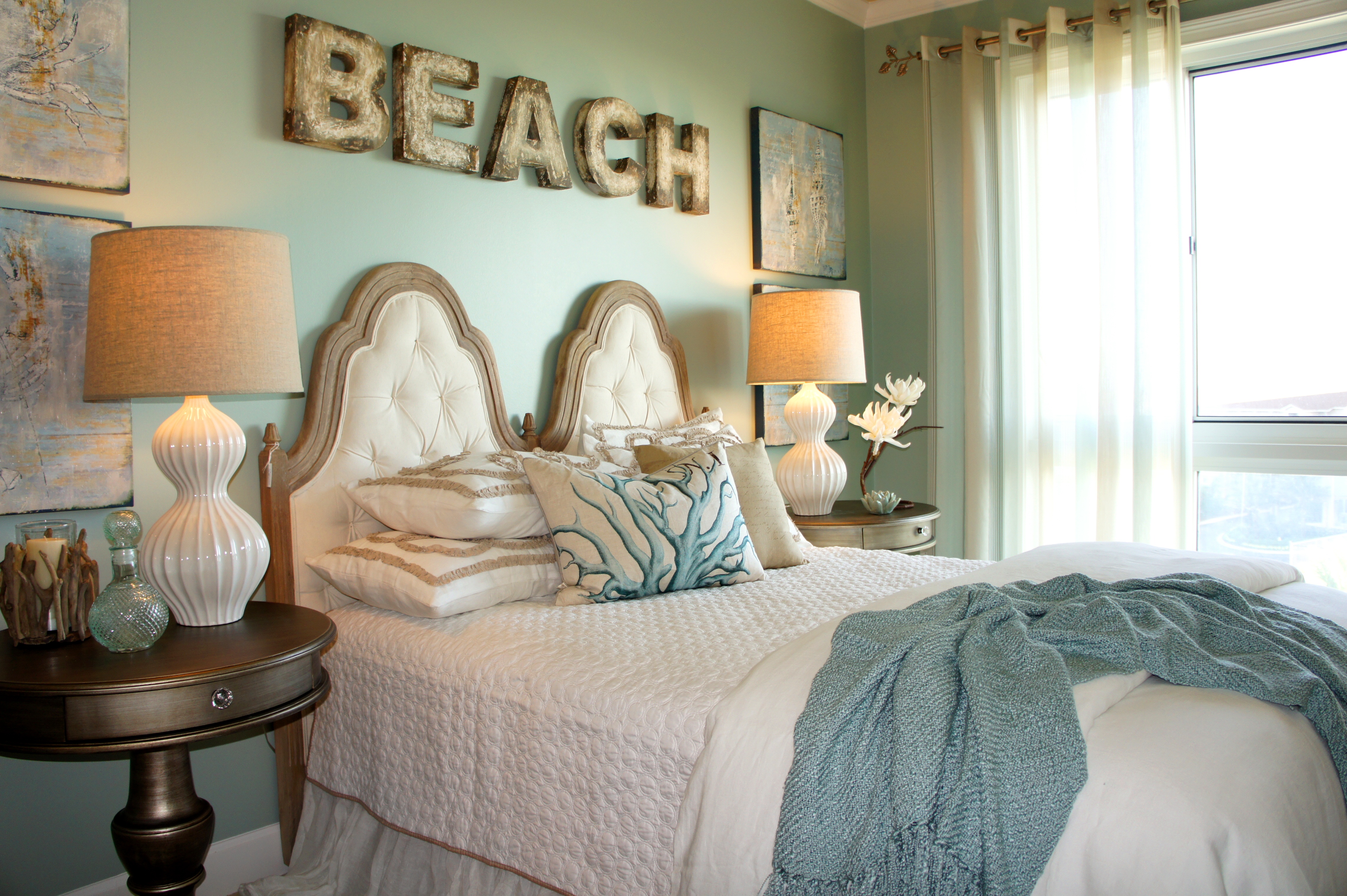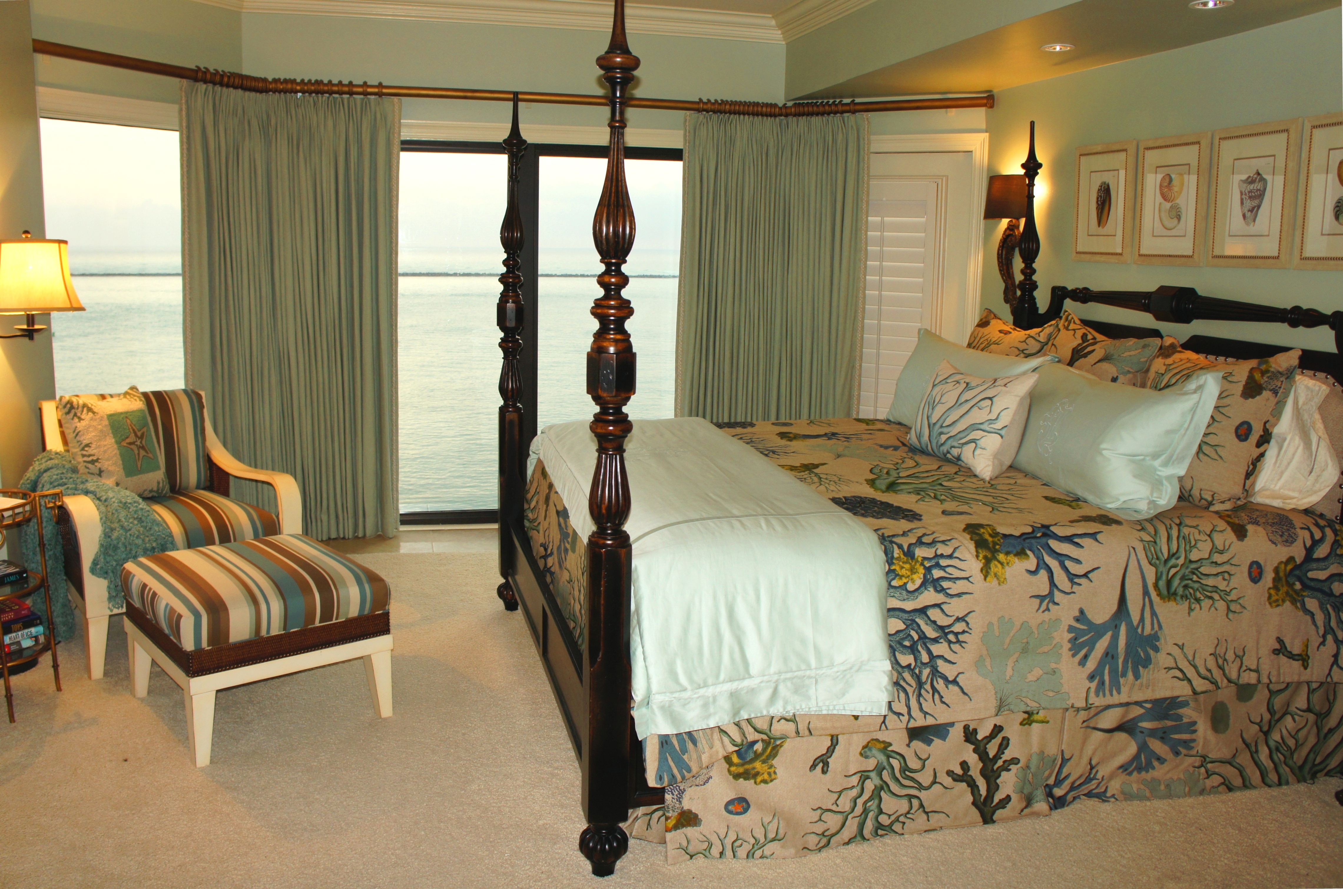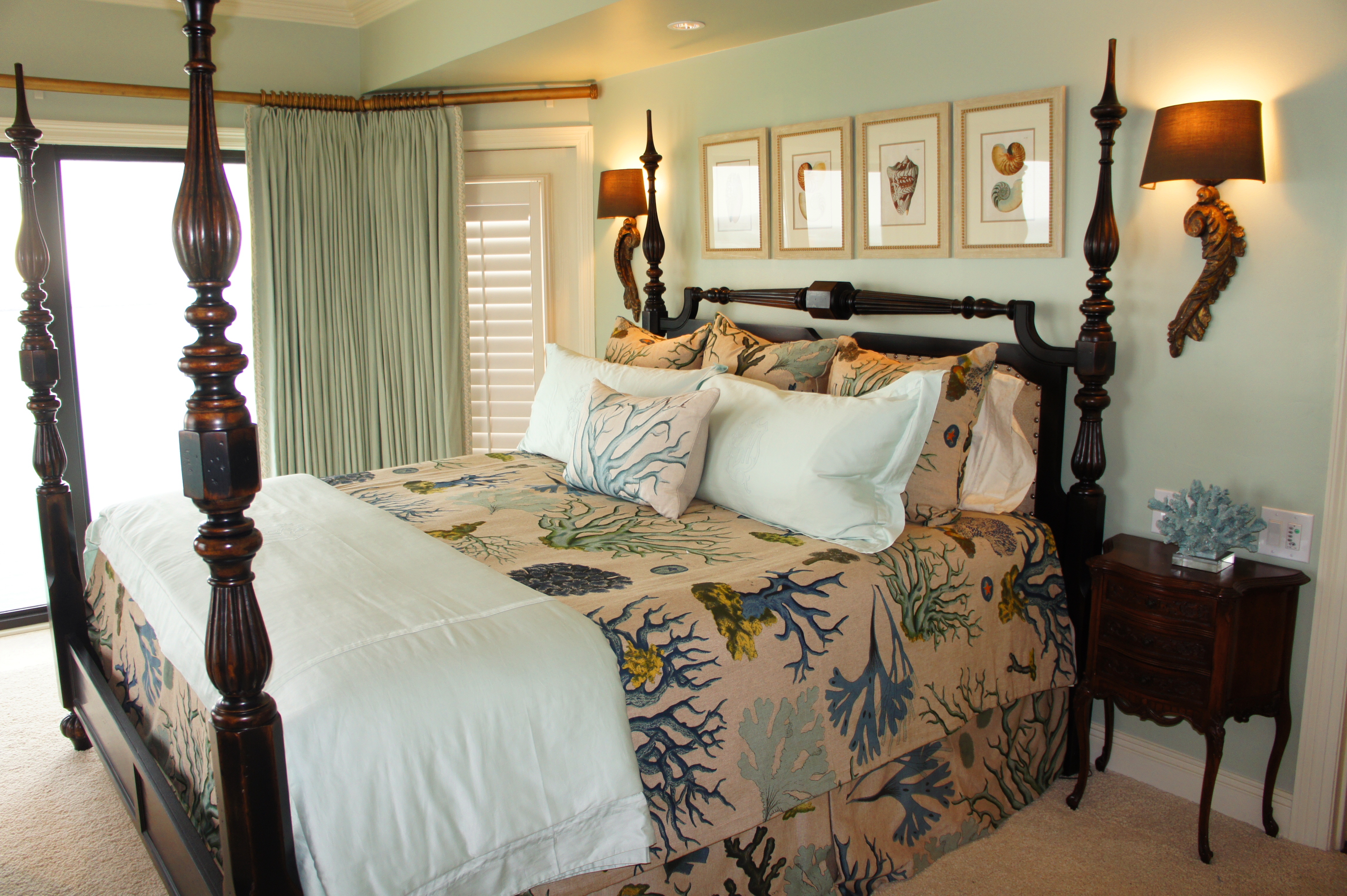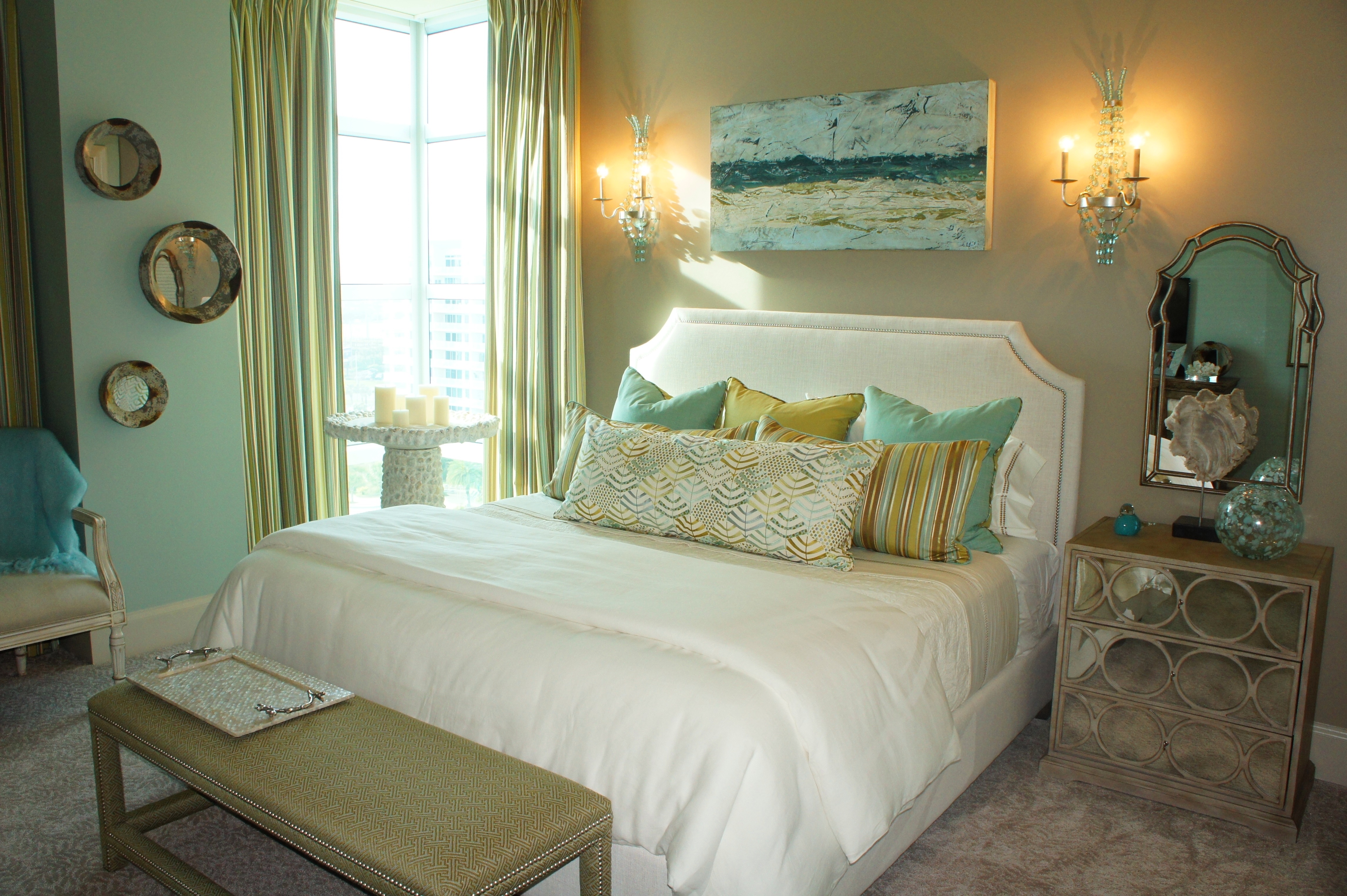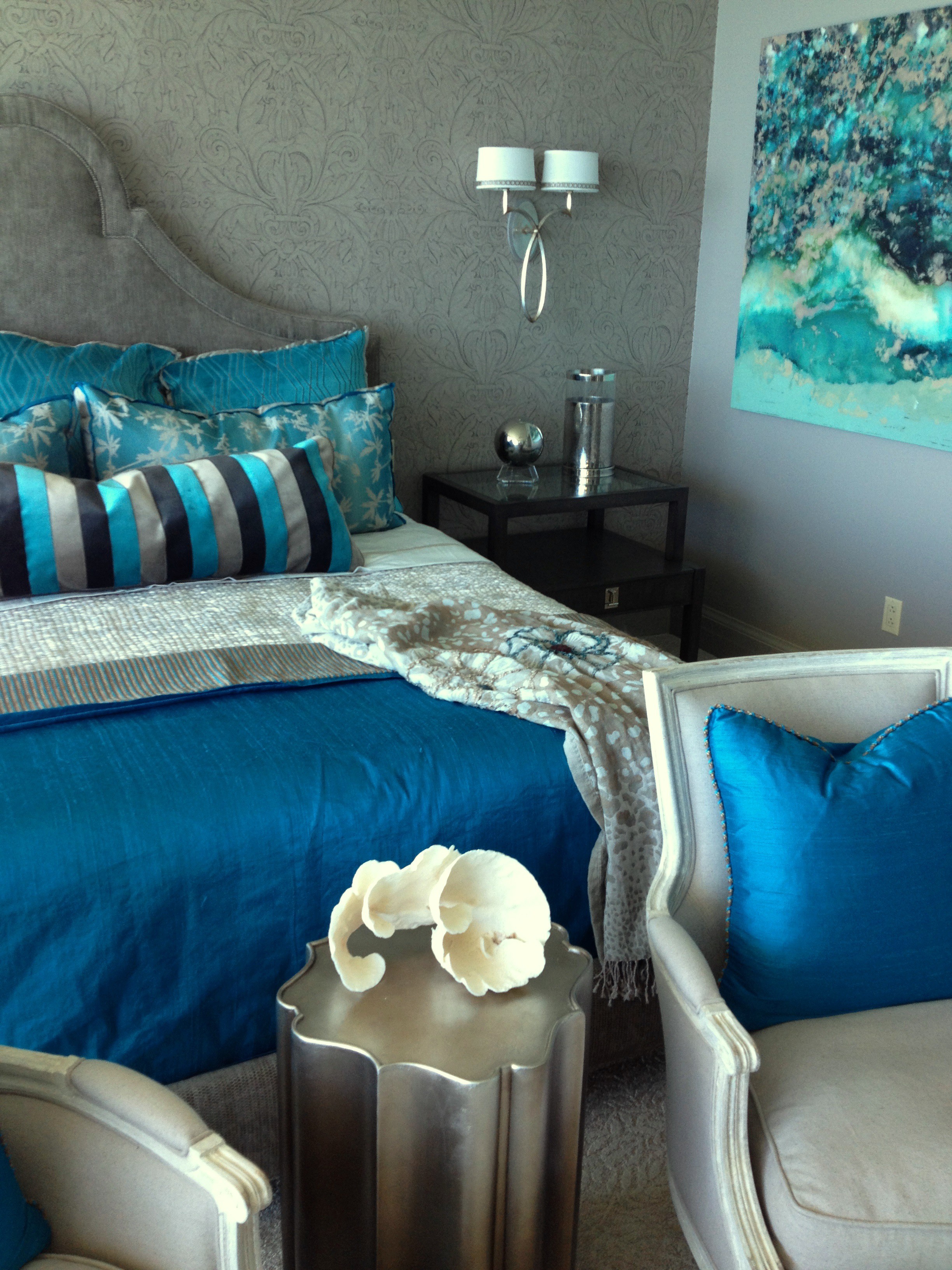 Master Bedroom: We indulged in coral and aqua in the Master Bedroom, for a rich culmination of color and texture!