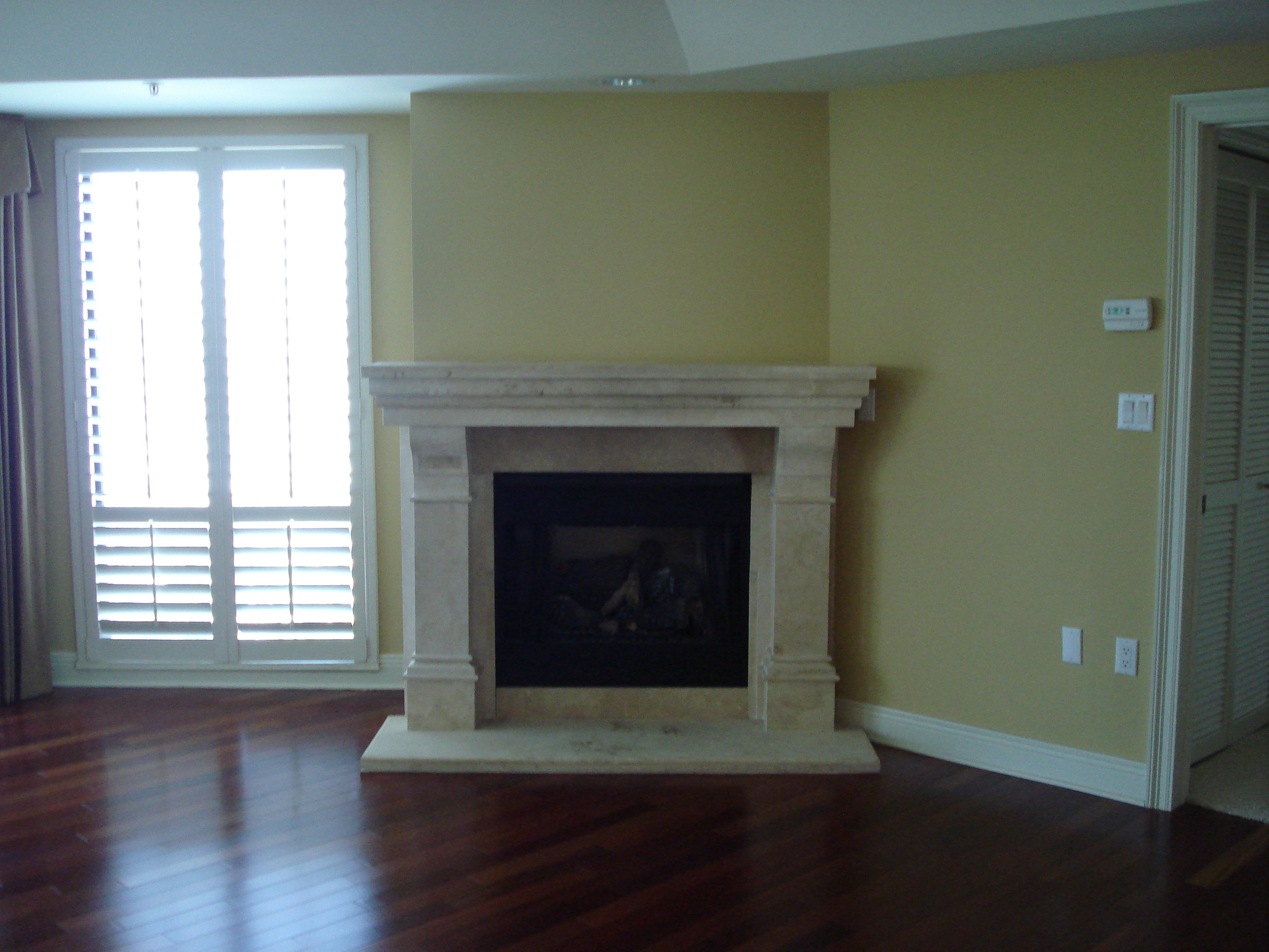 I spent a lot of time holding cream paint chips up to the stone in every room. I wanted the color to blend well with all the stone, but not go gold or yellow. I am so happy with the final result! I love how the brick seems so textured in contrast.