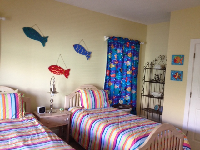 Second Bedroom: This butterfly room is a mix of orange, and soft greens.